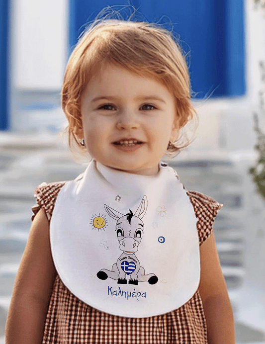 Baby's Bib - Greek Traditional - Donkey - Kali Mera - Good Morning